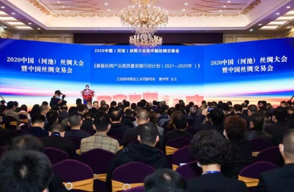 此次峰會由河池市人民政府、中國絲綢協(xié)會共同主辦,中國絲綢桑蠶品牌集群、中國中絲集團有限公司、廣西繭絲綢行業(yè)協(xié)會協(xié)辦。大會圍繞《蠶桑絲綢產(chǎn)業(yè)高質(zhì)量發(fā)展行動計劃(2021-2025年)》文件精神,謀劃“十四五”繭絲綢行業(yè)發(fā)展戰(zhàn)略,并就國內(nèi)絲綢行業(yè)創(chuàng)新發(fā)展、中國蠶桑絲綢文化傳承、蠶絲蛋白在現(xiàn)代生物科技領(lǐng)域的應用等議題舉行一系列主題報告和嘉賓訪談活動。