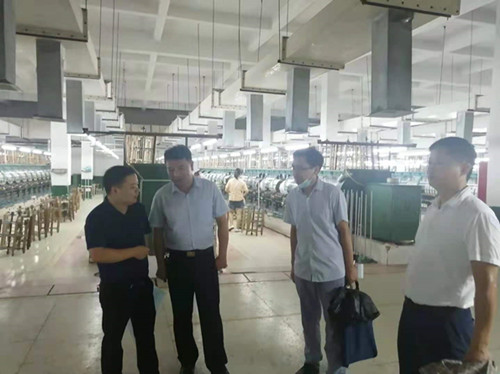 8月20日上午,阜陽(yáng)市發(fā)改委黨組書記、主任高文軍冒雨到安徽京九絲綢股份公司調(diào)研,阜陽(yáng)經(jīng)開區(qū)投資促進(jìn)中心副總經(jīng)理宋良策陪同調(diào)研。安徽京九絲綢股份公司總經(jīng)理周炎向領(lǐng)導(dǎo)一行匯報(bào)公司生產(chǎn)經(jīng)營(yíng)情況。