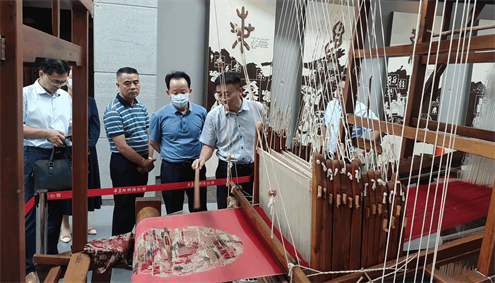 馬董事長首先向張局長一行介紹了公司全產(chǎn)業(yè)鏈發(fā)展的現(xiàn)狀,重點(diǎn)匯報(bào)了公司緊緊圍繞絲綢產(chǎn)業(yè)積極做好建鏈、強(qiáng)鏈、補(bǔ)鏈和延鏈等工作。在華夏絲綢博物館,張局長對(duì)文字的起源與絲綢對(duì)人類文明貢獻(xiàn)的介紹極有興趣。在大花樓織機(jī)展示區(qū),張局長感嘆古人巧奪天工的設(shè)計(jì)和能工巧匠的智慧。在絲綢產(chǎn)品展示區(qū),張局長詳細(xì)了解華詩雅蒂的產(chǎn)品結(jié)構(gòu)、市場建設(shè)、品牌創(chuàng)新等情況,對(duì)華詩雅蒂以“絲綢+文化+旅游”的經(jīng)營模式帶動(dòng)顧客體驗(yàn)式消費(fèi)的創(chuàng)新工作給予了高度肯定。他指出,華詩雅蒂對(duì)產(chǎn)品負(fù)責(zé),對(duì)消費(fèi)者負(fù)責(zé),彰顯了品牌的誠信與擔(dān)當(dāng),并鼓勵(lì)企業(yè)繼續(xù)加大產(chǎn)品研發(fā)與科技創(chuàng)新,利用好自身的優(yōu)勢(shì),做大、做強(qiáng)品牌,為消費(fèi)者提供更多、更好的絲綢產(chǎn)品。