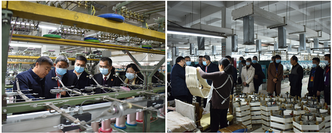 11月25日,太和縣人大常委會副主任張好軍帶領(lǐng)市人大代表太和縣考察團(tuán)深入京九絲綢開展調(diào)研活動,潁州區(qū)人大常委會副主任張思民,潁州區(qū)法院院長宮榮賓陪同視察。安徽省人大代表、阜陽市人大代表、公司董事長馬品德熱情接待考察團(tuán)一行。