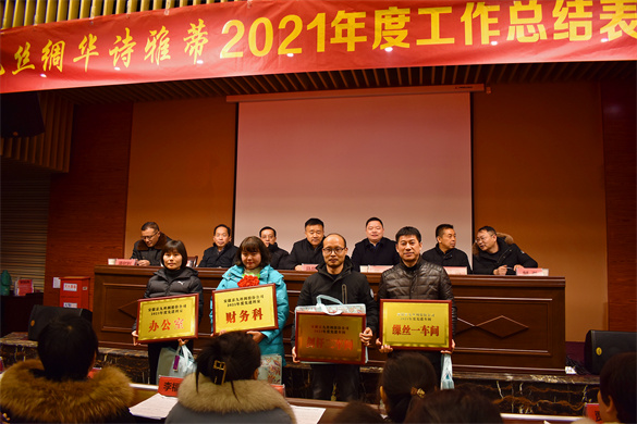光榮屬于奮斗者,幸福屬于創(chuàng)造者。馬董事長說,2021年安徽京九絲綢股份公司實現(xiàn)了穩(wěn)健高速發(fā)展,成就的取得,離不開各車間班組、華詩雅蒂店面和機關(guān)科室的一批批優(yōu)秀個人和先進(jìn)集體的引領(lǐng)與示范。他代表公司黨委、公司和公司工會向獲得表彰的優(yōu)秀個人和先進(jìn)集體表示熱烈祝賀,并對全體員工為公司2021年取得的優(yōu)異成績所做出的努力與奉獻(xiàn)表示衷心的感謝!他強調(diào),公司將最大限度地滿足員工物質(zhì)和精神兩方面的需求,讓廣大員工充分感受到京九絲綢·華詩雅蒂家庭般的溫暖,學(xué)校般的學(xué)習(xí)氛圍和兄弟姐妹般的友愛互助。最后,馬董事長希望公司全體員工上下一心,迎難而上,為公司更好的發(fā)展繼續(xù)努力奮斗!