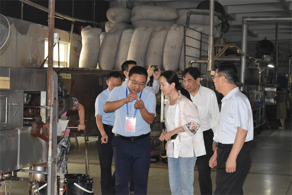 考察團(tuán)首先深入劍桿車間、繅絲車間、復(fù)整車間和準(zhǔn)備車間,實(shí)地調(diào)研公司全產(chǎn)業(yè)鏈生產(chǎn)情況,親眼見證了一顆蠶繭變成一片絲綢的偉大時(shí)刻,對車間干凈的工作環(huán)境贊不絕口,為員工表現(xiàn)出來的精神風(fēng)貌連連稱頌?疾靾F(tuán)一行充分肯定了京九絲綢一線員工的偉大,對員工不畏艱難,孜孜不倦追求產(chǎn)品質(zhì)量的行為深表敬意。