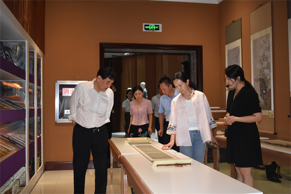在華夏絲綢博物館門前,馬董事長對考察團(tuán)的到來表示歡迎,并向考察團(tuán)介紹了公司目前的發(fā)展規(guī)劃、生產(chǎn)經(jīng)營、市場行情等情況?疾靾F(tuán)興致勃勃地參觀了歷史文化廳、產(chǎn)品廳、企業(yè)文化廳和黨史黨建室,深入了解了絲綢的起源、發(fā)展和演變,對館內(nèi)的大花樓織機(jī)、龍袍、華詩雅蒂產(chǎn)品產(chǎn)生了濃厚的興趣,對公司依托華夏絲綢博物館宣傳絲綢歷史、弘揚(yáng)絲綢文化的行為高度贊譽(yù),對公司著力打造行業(yè)招牌、名族品牌和世界名牌“華詩雅蒂”的做法給予了極高的評價(jià)。企業(yè)家們結(jié)合自身產(chǎn)業(yè)需求和未來發(fā)展規(guī)劃,真誠希望在合適的機(jī)會(huì)下選擇與京九絲綢這樣有實(shí)力、有擔(dān)當(dāng)?shù)钠髽I(yè)合作,以謀更大的發(fā)展。