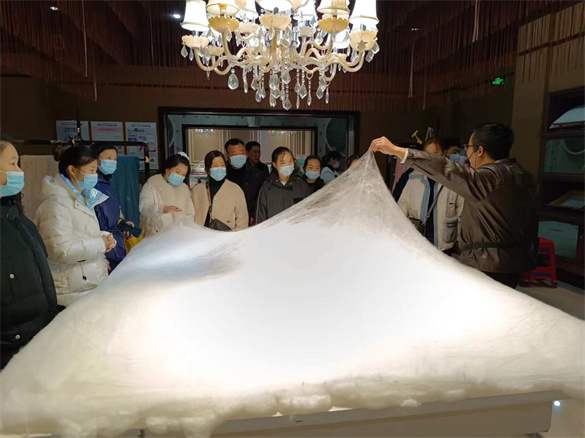新員工首先參觀了華夏絲綢博物館,在絲綢歷史的海洋里感悟絲綢文化的博大精深、源遠流長;傾聽絲綢故事的精妙絕倫、跌宕起伏.對京九絲綢人親手制作出的華詩雅蒂產(chǎn)品嘖嘖稱贊,新員工們被公司優(yōu)秀的企業(yè)文化、艱苦創(chuàng)業(yè)的歷程深深折服,更為公司這些年來在黨的領導下取得的成績感到驕傲和自豪。