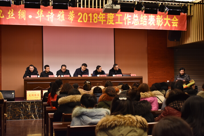 時光的指針飛速旋轉,歷史的車輪滾滾向前,不知不覺中我們又迎來新的一年。安徽京九絲綢·華詩雅蒂絲綢股份公司 2018年終總結表彰大會于2月1日下午在華夏絲綢博物館二樓會議室隆重舉行。會議由華詩雅蒂副總經(jīng)理周炎主持,全體受表彰人員、科室人員、班組長(包括店長)及以上管理人員近兩百名員工參加了表彰大會。