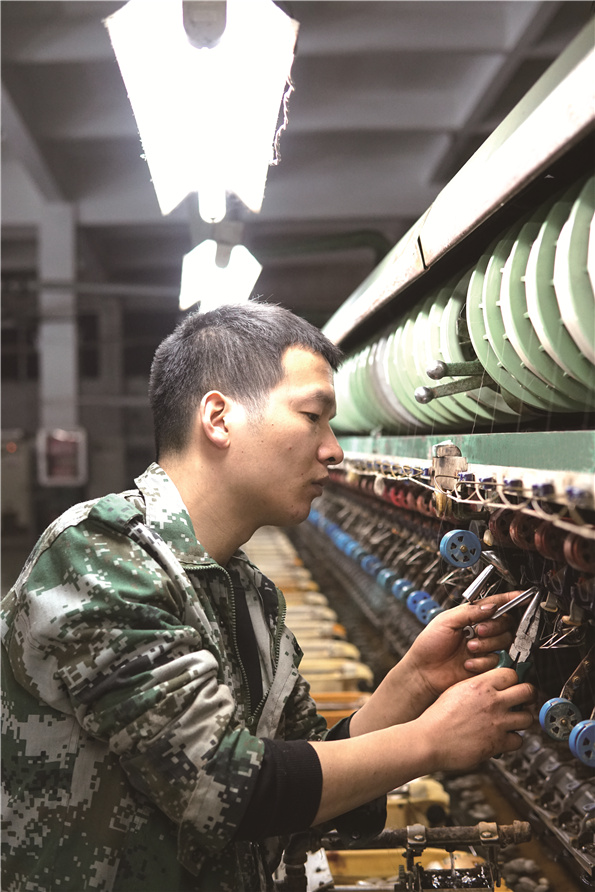 劉陽:剛進(jìn)廠的時(shí)候,我對機(jī)器不怎么了解,經(jīng)常會加班到深夜。記得有一段時(shí)間,車間有一組機(jī)械故障多,經(jīng)常出現(xiàn)野條,擋車工也因此被罰錢,車間主任先后調(diào)了幾個(gè)機(jī)修工,都沒有很好地解決。后來主任讓我去干,我告訴自己要抓住這個(gè)機(jī)會來證明自己的實(shí)力,于是我開始勤遛、勤看、勤摸索,很快我就熟悉了機(jī)器構(gòu)造,摸清了每個(gè)機(jī)械部件的作用和特點(diǎn),原本野條多、機(jī)械故障頻出的局面慢慢得到扭轉(zhuǎn),我也獲得了領(lǐng)導(dǎo)和同事的認(rèn)可。2015年,機(jī)修工大調(diào)動,有一些人不愿意干了,車間人手不夠,我是第一個(gè)一人看三組車的機(jī)修工。