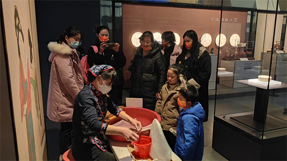 華詩(shī)雅蒂·華夏絲綢博物館絲綢文化藝術(shù)展春節(jié)期間在阜陽(yáng)市博物館成功舉辦。本次展覽是應(yīng)阜陽(yáng)市博物館的邀請(qǐng),華詩(shī)雅蒂精心準(zhǔn)備的絲綢文化宣傳活動(dòng)。過(guò)文化大年,享奇妙體驗(yàn),旨在增強(qiáng)人們對(duì)傳統(tǒng)節(jié)日的親近感、對(duì)中華歷史文化的自豪感,豐富市民的傳統(tǒng)節(jié)日文化活動(dòng)。展覽歷時(shí)15天,觀眾逾30000人次。華詩(shī)雅蒂絲綢文化藝術(shù)展依托華夏絲綢博物館資源,展示了桑蠶一生科普視頻、中國(guó)四大名錦介紹、巧奪天工的錦類織機(jī)模型、手工剝繭技藝、絲綢文化產(chǎn)品等內(nèi)容,給觀眾帶來(lái)一場(chǎng)豐富的絲綢文化盛宴,尤其是正月十四元宵節(jié)前夕阜陽(yáng)市博物館舉辦的首屆博物館奇妙夜活動(dòng),更是將活動(dòng)推向高潮。夜游活動(dòng)從晚上6點(diǎn)-9點(diǎn),游人如織。華詩(shī)雅蒂展示的別樣湯圓,從歷史發(fā)展的角度挖掘了阜陽(yáng)元宵節(jié)的由來(lái)與蠶桑發(fā)展之間的聯(lián)系,向觀眾普及了阜陽(yáng)悠久的蠶桑生產(chǎn)歷史,借此弘揚(yáng)優(yōu)秀的絲綢文化,吸引一批批觀眾駐足觀看欣賞,得到了主辦方的高度評(píng)價(jià)和觀眾的一致好評(píng)。