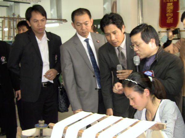 代表團(tuán)一行先后參觀了公司選繭車間、繅絲車間、復(fù)整車間以及劍桿車間,全景式地考察了絲綢加工生產(chǎn)工藝,在總經(jīng)理李開典的詳細(xì)介紹下,這些遠(yuǎn)道而來的客人對絲綢的生產(chǎn)工藝流程有了更深的了解,對公司給予了很高的贊譽(yù)。