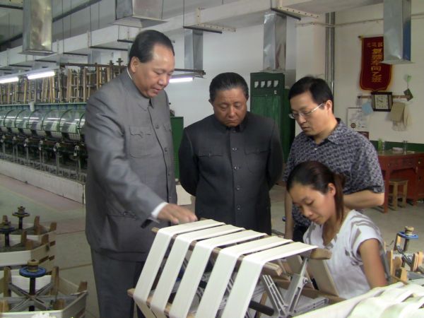 此次開盤盛典“主席”與“小平”親臨現(xiàn)場(chǎng),為“華詩(shī)雅地” 華美亮相錦上添花!爸飨 與“小平” 在李開典總經(jīng)理等領(lǐng)導(dǎo)的熱情陪同下不辭辛勞來(lái)到生產(chǎn)現(xiàn)場(chǎng),仔細(xì)察看了整個(gè)生產(chǎn)與工藝流程,對(duì)絲綢工藝與品牌華詩(shī)雅蒂表示了極高的興致,并不時(shí)表示贊賞。